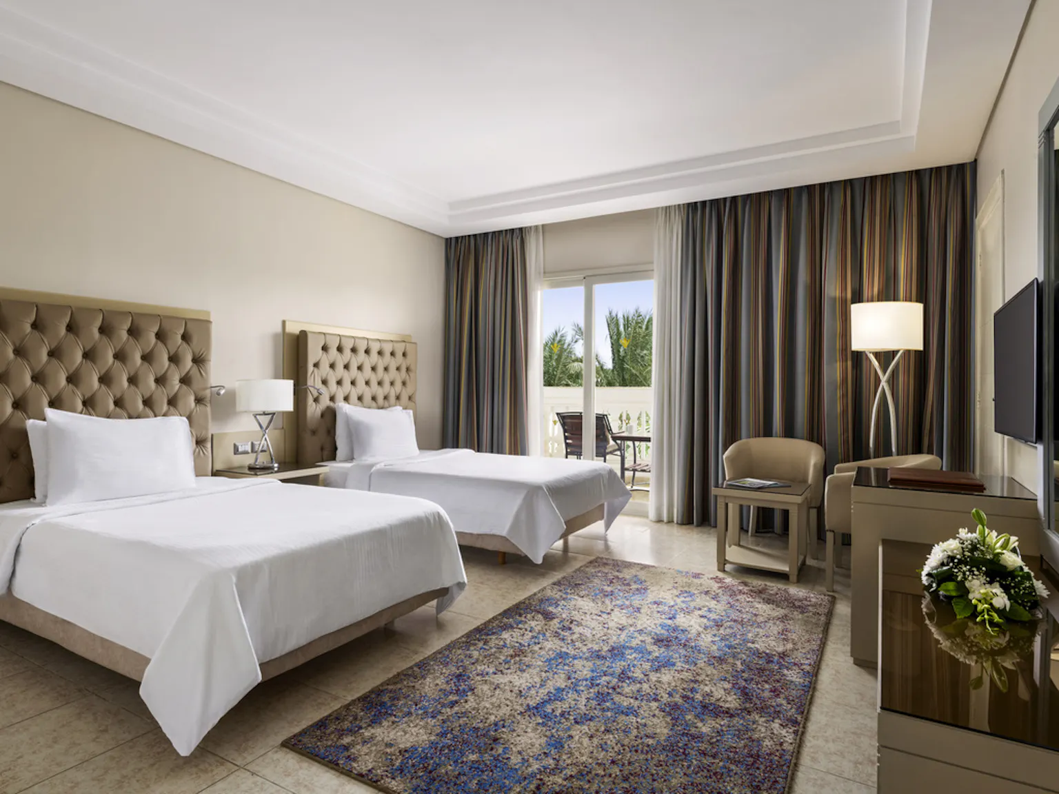 • Featuring a king and twin room, living area, 1 fully stocked mini-bars, tea and coffee making facilities, bathrobes, and slippers, 3 LCD IPTV screens, 3 bathrooms, 2 safe boxes.